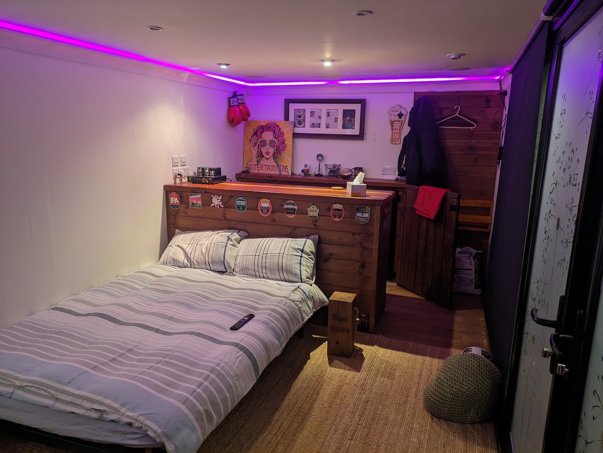 A large double room and private shower room in a detached home in a quiet residential area within 20 minutes walking distance of Reading mainline station (25 minutes by train into London Paddington). The house is also within easy walking distance of the Reading Festival. The guest accommodation is on the ground floor; the bedroom is directly opposite the front door.