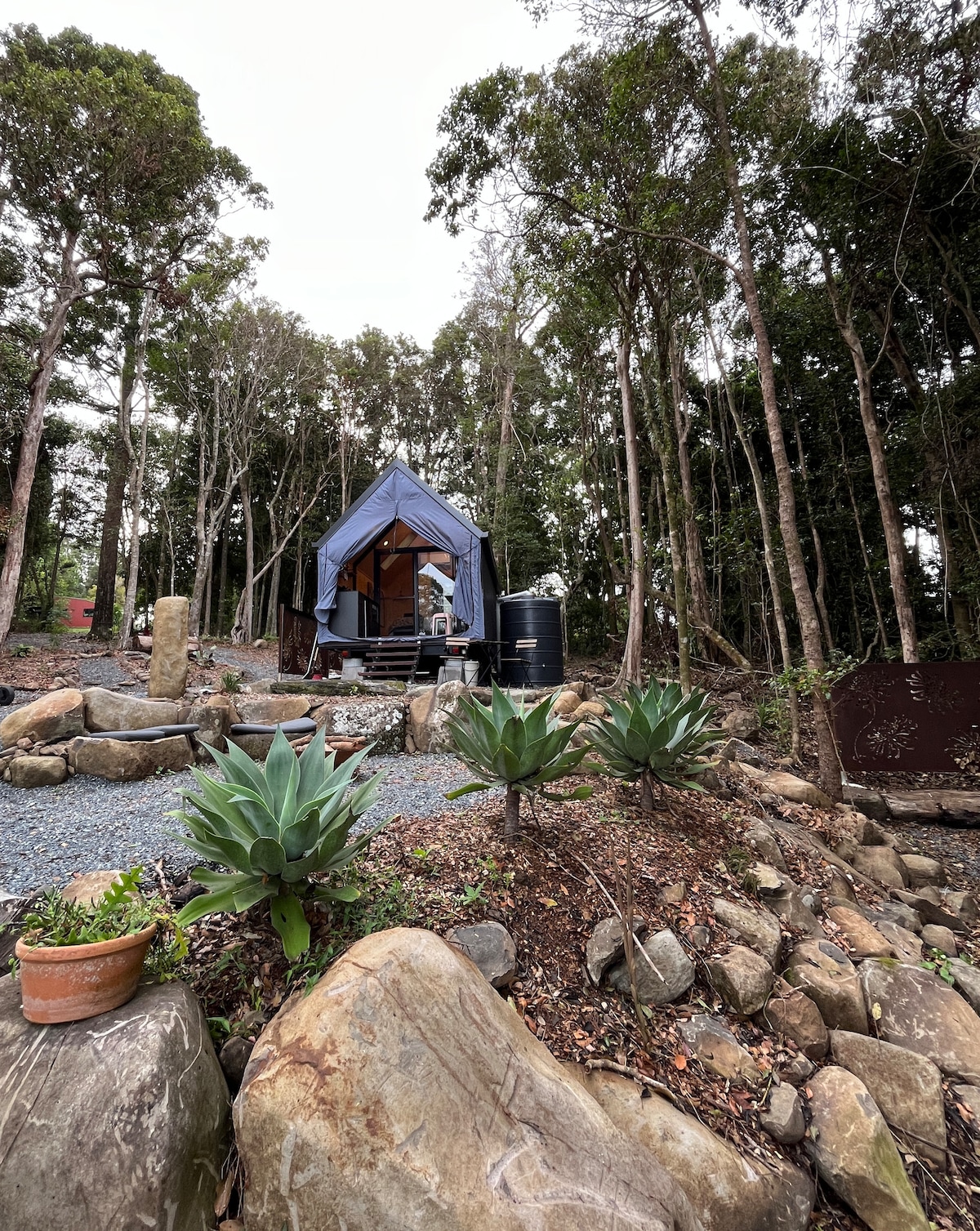 Welcome to Tiny Home Benjamin ✨ Nestled in the beautiful Gold Coast Hinterland, it offers a unique and unforgettable stay. Designed with comfort and charm in mind, this cozy retreat features its own private deck, courtyard, and outdoor bath—perfect for stargazing under the night sky. Located just 20 meters from the host’s home, you will have the reassurance of nearby assistance whenever needed. *outdoor security cameras are installed throughout the property for your safety.