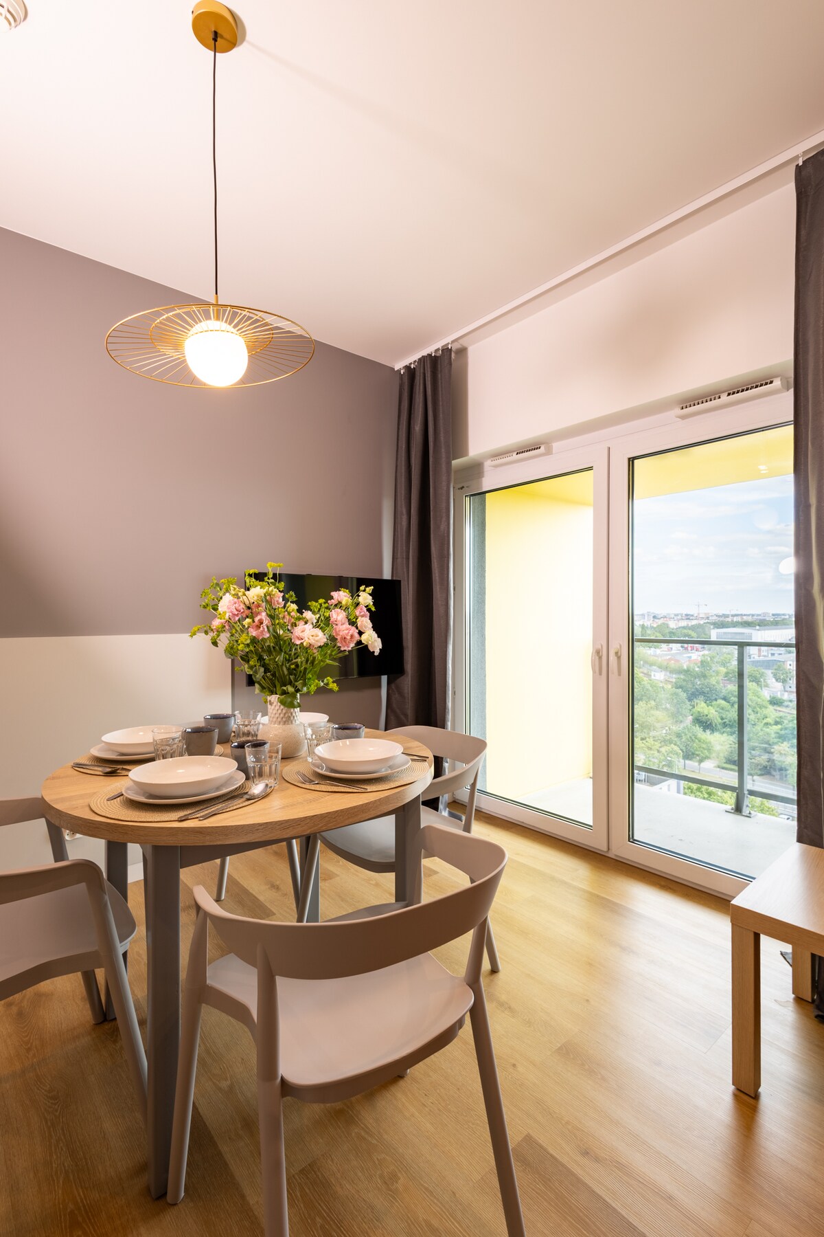 Modern 70m2 apartment above rooftops of Wroclaw