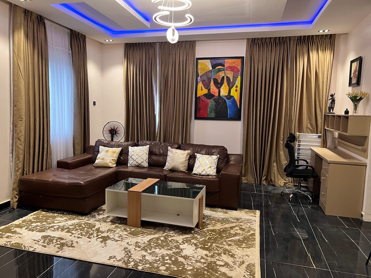 Airport Pick up/Drop off, daily driver services @ a fee. Royalty Luxury Serviced Apartment was concieved & designed as a home for Royals. It’s quiet, unique, stylish & homely with exquisite furnishing to give a feel of a comfy home. Located in a serene secured gated estate with convenient access to all part of Abj. 247 electricity with solar/Inverter systems, Fiber Optic wifi, fan, fully fitted modern kitchen, armed security. Pool table, relaxation swing, swimming pool & washing machine