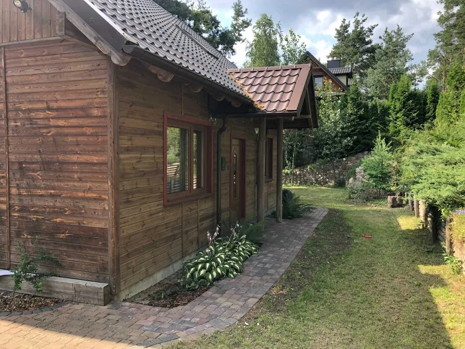 Cosy cabin surrounded by plenty of trees and pond lakes. Large 3 lakes with public access in the closest neighbourhood. Take a rest from hectic city life and admire the Kashubia heart from my cosy wooden cottage. The interiors are furnished and arranged to make you feel at home. Have a coffe at the private garden just by a pond, hear frogs calls from the waterside and birds in a beautiful garden-wood. Have a nap in hammock or in a comfortable lounge chair.
