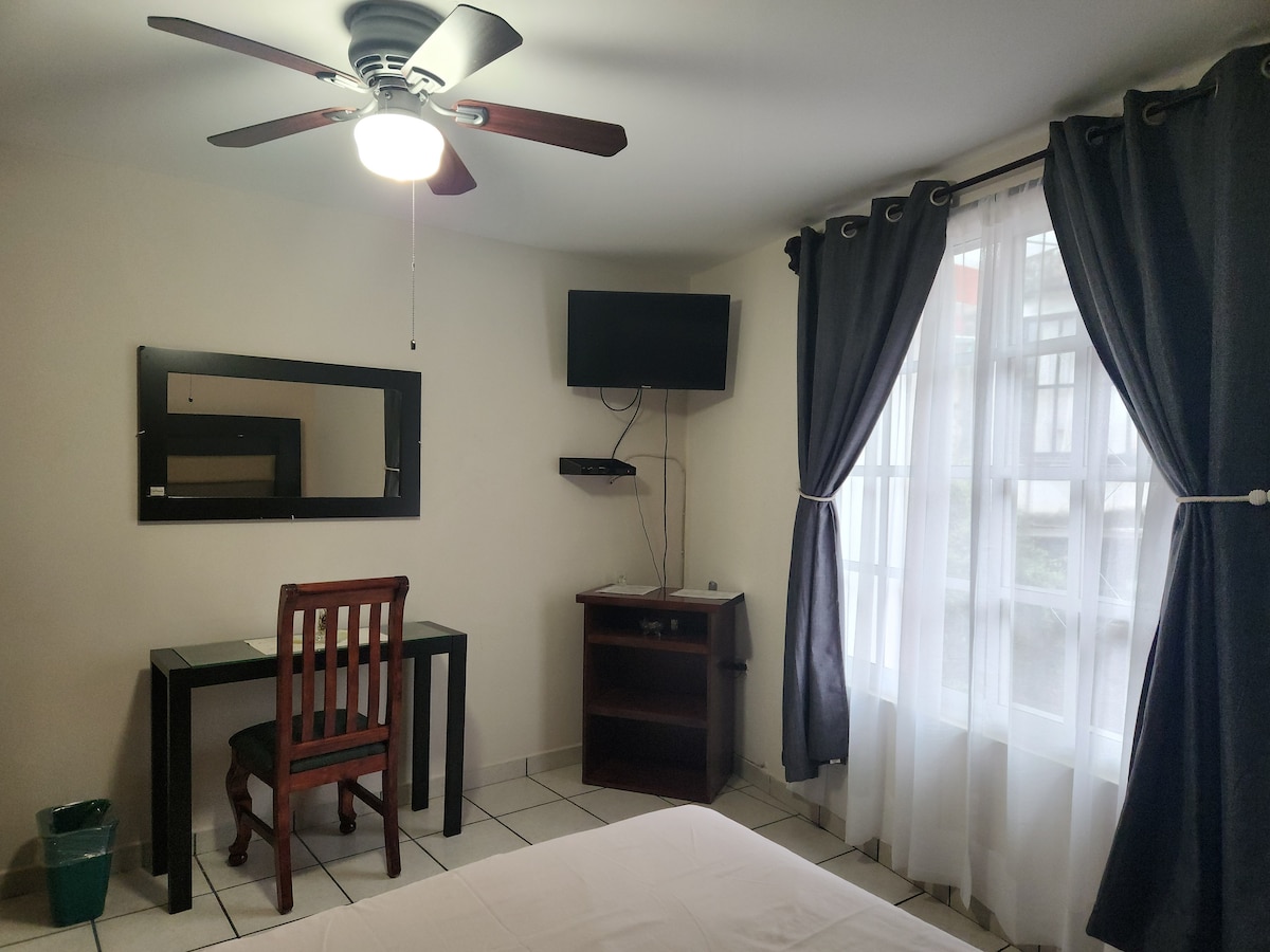 -- Large very bright and cool bedroom. - Closet. - A single armchair with table. -Wire wifi and cable TV. -Bathroom with hot water. -The has a living room, and a kitchenette. - With a courtesy of water and coffee. -In a one-day stay, the place will be delivered clean. -Long stays, for cleaning, you will be provided with everything you need to make it to your liking and a change of free (towels and sheets ). Safety and hygiene.