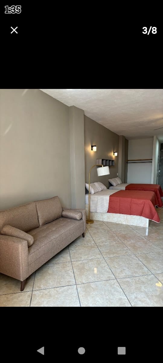 A cozy, completely independent studio apartment with a living room, dining room, and kitchen. Ideal for a rest or work trip. Just a couple of blocks from the Tepic freeway, and just 8 minutes from Tepic Ecological and Technological Park, 15 minutes from Plaza Forum, or 15 minutes from the historic center. In a very quiet and family-friendly residential area. It has a double bed and a sofa bed. Smart TV, Wi-Fi, Kitchen with electric stove, coffee maker and mini-refrigerator.
