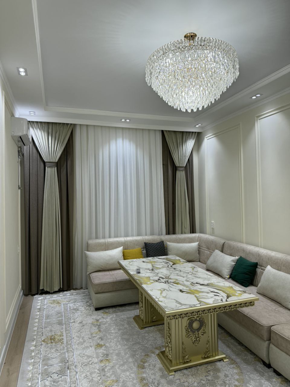 New built house with friendly neighbors and 24/7 support and security(with cameras and motion detection equipments). Centrally-located place. 1 km from train station and 3 km from airport. Have a lot of mini markets and 2 international bazars. House is fully equipped with new furnitures for example comfortable beds, bathroom, and kitchen. In kitchen have dishes came from Turkey. No problem with electricity. Comfortable and warm home. Have underfloor heating and air conditioner.