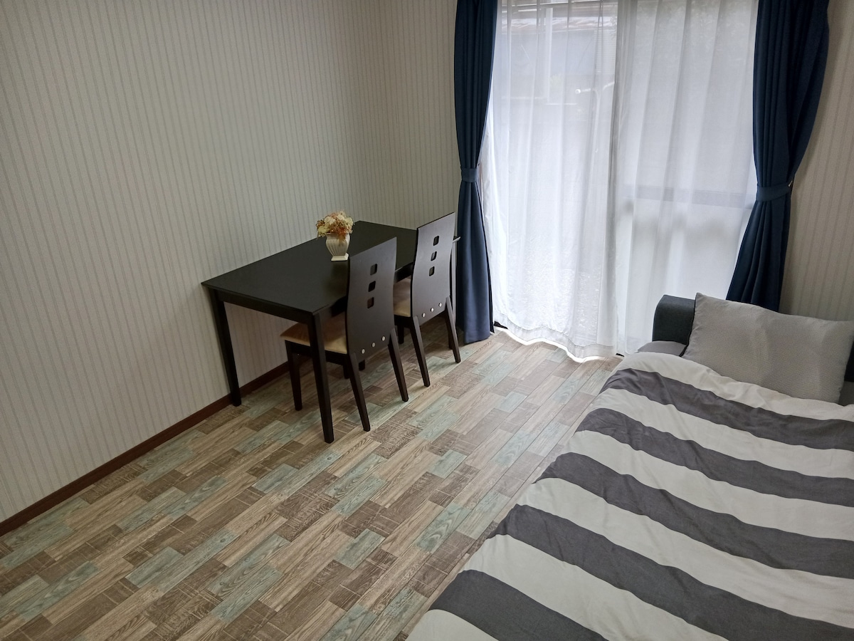 This Mimihaus Makuhari is located in a very convenient location, 1 minute from Keisei Makuhari Station and 4 minutes from JR Makuhari Station, between Narita and Tokyo. It is also about a 5-minute taxi ride from Kaihinmakuhari Station, where the limousine bus from Narita Airport arrives. There is also a large supermarket, Ito-Yokado, and Japan's largest shopping mall, Makuhari Seaside Park, which has a Japanese garden, making it very convenient to get to Makuhari Messe and Tokyo Disneyland. We also have two bicycles available for guests to use for strolling around Makuhari. Feel free to use them during your stay. (Please be sure to lock them to prevent theft) In addition, the room has a queen bed and a "kotatsu" (a low table in the summer), which is unique to Japan, where you can sit comfortably on the low sofa and watch TV or eat. It can accommodate up to 3 people because you can pull out the futon and sleep next to the kotatsu. (Please note that it will be quite cramped if you have a lot of luggage) You can enjoy a comfortable stay while experiencing a Japanese kotatsu (a tatami mat room heater, or a chabudai in the summer).