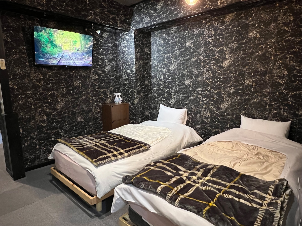 We have prepared a slightly luxurious suite room. An open bedroom in a relaxing living room. We have a luxurious queen size bed. Open bathroom on a 37 ㎡ terrace. 180 cm wide bathtub. You can eat and drink on the terrace. And it's in the middle of downtown! Delivery from restaurants in the same building, terrace BBQ available. It is in the heart of the downtown area, but it has a resort-like atmosphere. In addition, if you are using it for 3 or more people, we will open another bedroom. Of course, we also have a luxury queen size bed here. TVs are available in each room. We hope you will have a relaxing time in this unusual space. Within walking distance, there are many historic buildings and tourist facilities such as Tsuruga Castle (Aizu Wakamatsu Castle) and Iimoriyama (Byakkotai), and within a 30-minute drive, there are also Inawashiro Lake, where you can do marine sports, golf courses, ski resorts, etc. Aizu Wakamatsu is a city of sake. Enjoy it to your heart's content with delicious food.