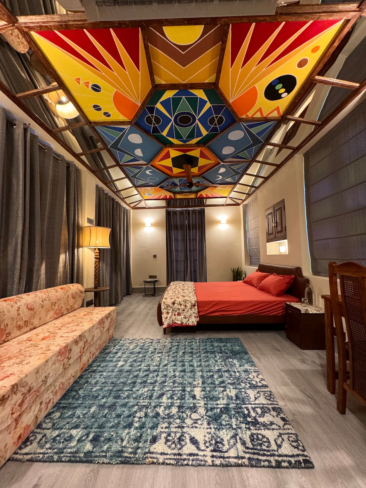 This charming 1BR features a Jacuzzi, a beautiful terrace & lush plants. It's a cozy, intimate space-not a large, expansive setting,with intentionally rustic decor. Please read ALL details before booking, including the "Other details to note" section & check our unbiased guest reviews! Photos with candles, flowers, and fairy lights showcase our romantic setup, available for Rs. 2950. Hot water in the Jacuzzi is offered from December to February.