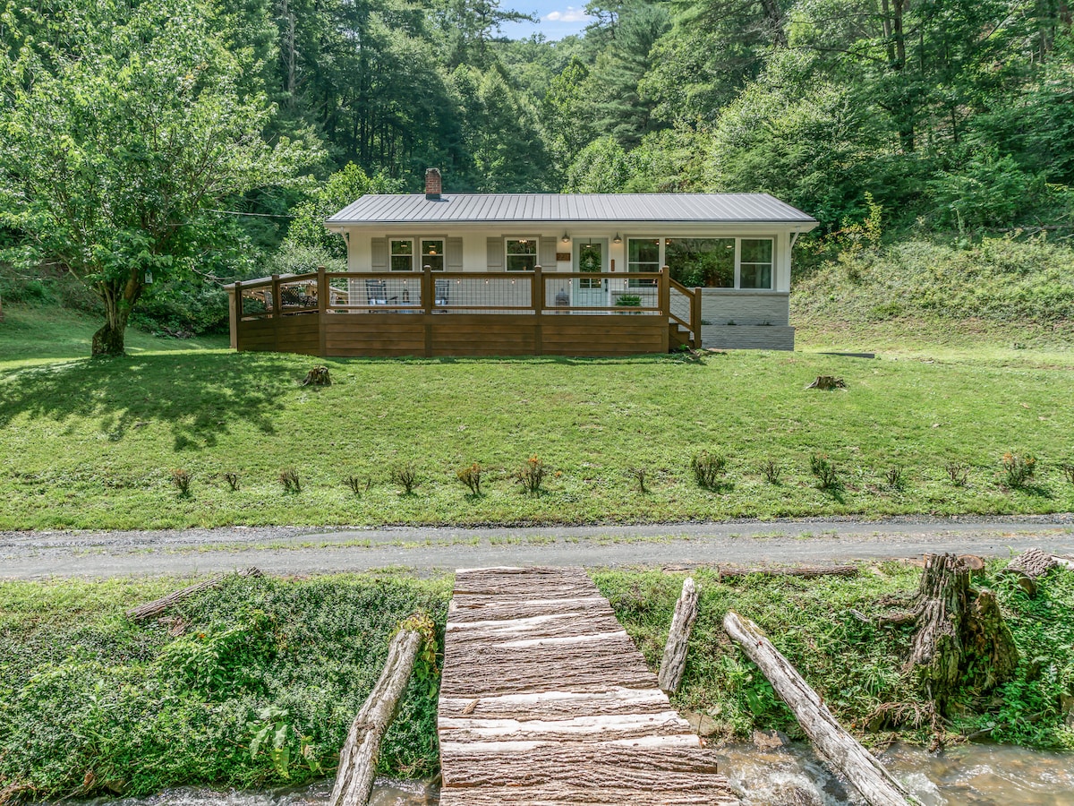 The perfect cabin getaway by the melodious creek. With high open ceilings and ultra comfortable bedrooms it is idea for a family or two couples. Fully equipped kitchen, high speed wifi, spacious porch and back deck overlooking the creek. gas grill, gas log fireplace, smart TV. All the comforts of home! Conveniently located only15 minutes to downtown Asheville, 8 miles from the quaint town of Weaverville, and only 5 miles to the Blue Ridge Parkway.