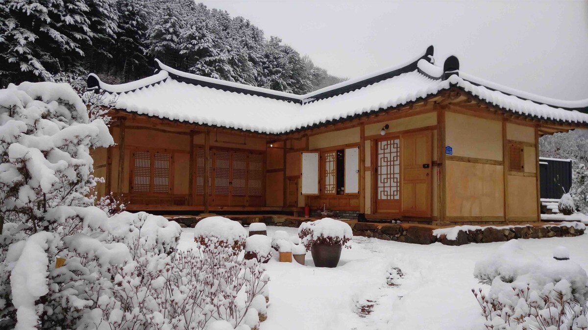 It is a private Hanok in a quiet village. It is recommended for those who want to spend time with their family or couple, or those who need a break or healing in a cozy place. During the day, you can enjoy the mountains and fields, and at night you can see the stars shining in the sky. The number of guests available for accommodation is 2 people (2 adults). Reservations can be made for up to 2 people until February and up to 4 people from March. Infants can stay with you at no extra charge. If you need extra bedding, please mark it as an additional person. The bedding is always fresh and hand-washed. We prepare organic cotton, cotton wool, and pure cotton products. You can cook at the property. However, please refrain from cooking cooking food with strong smells indoors. If you tell us in advance, you can barbecue outdoors. (There is no additional cost, and charcoal and grill must be prepared by yourself.) We prepare premium beans and high-grade boy tea. You can enjoy drip coffee and refreshments in the garden that my mother cultivates.