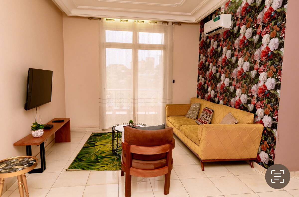 Comfortable furnished apartment, located minutes from Youndé airport. Secure and quiet, friendly and simple setting for your stays in Cameroon. 2 Bedrooms, living room, equipped kitchen, shower with hot water, free parking.