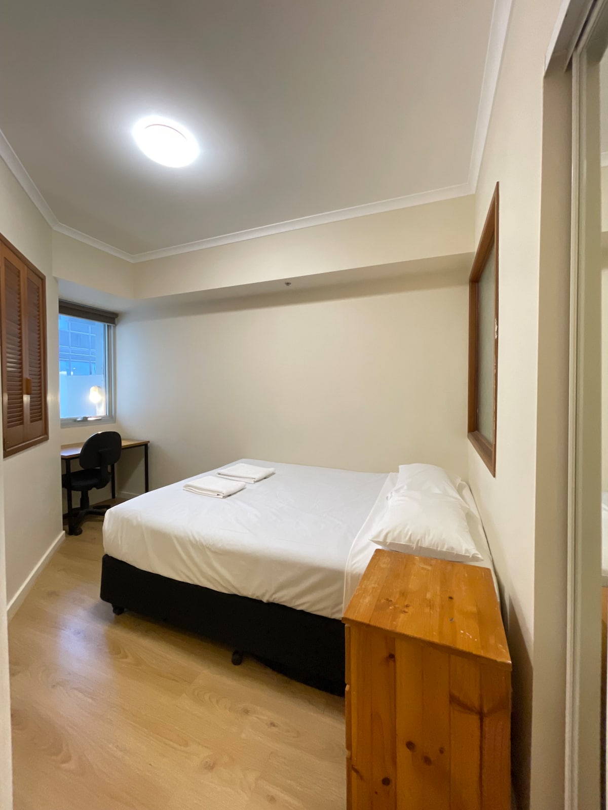 King studio in Melbourne CBD, sleeps 3 with king & single beds. Walk or tram to Queen Vic Market, RMIT, Melbourne Central, Lygon St, Chinatown & hospitals. Tram stop at the door with access to Flinders St, Crown, MCG & Docklands. Includes kitchenette, private bathroom, Wi-Fi, pool, gym, sauna, laundry facility, on-site café & secure paid parking (on request). Great for couples, solo guests or small families.