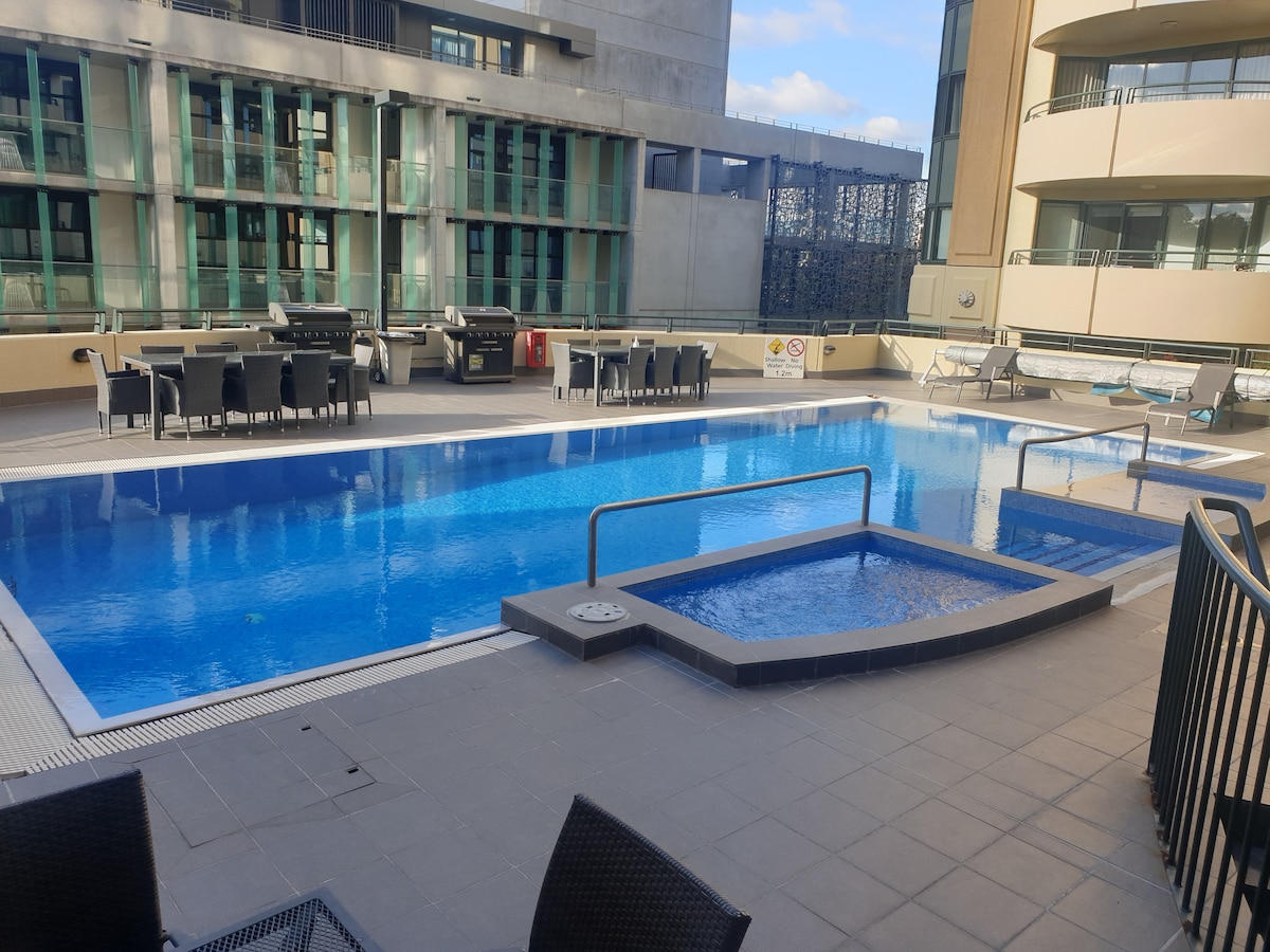 This spacious, ground-floor unit features a security fence and a front courtyard. It’s furnished in a cozy mid-century modern style with a leather couch, recliners, and electronic blinds. Amenities include air-conditioning, a coffee machine, full-sized fridge, and in-unit laundry. A laundromat and stylish bar are nearby. The unit offers a large TV, whiteboards, a desk with a monitor, and access to a pool, sauna, and gym. Conveniently located near Braddon, Civic, and public transport options.