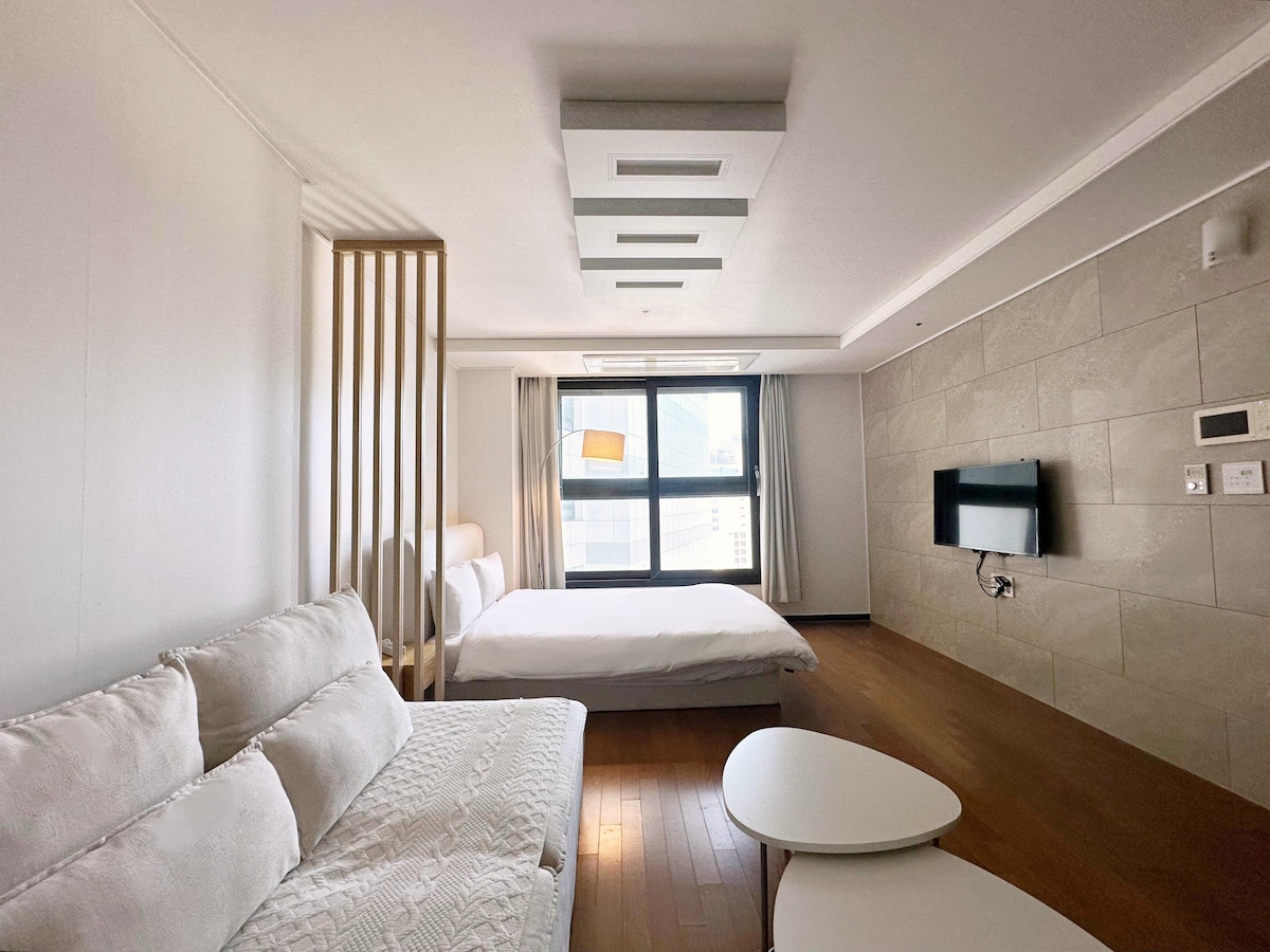 Newly openedโจ on July 28, 2024 โจAll rooms with terrace ocean view The โจfinest Sealy bed for the best rest Fresh specialty bean capsule coffee roasted directly from a famousโจ domestic cafe (custom-made!) โจLocated right next to Songdo Cable Car, adjacent to Songdo Beach โค๏ธ Since the room is randomly assigned, please understand that the interior and floor number may be different from the photo. ๐บElectronics: TV with Netflix (for your account), free WI-FI, individual air conditioner, air purifier, wall pad, fridge, Nespresso coffee machine, electric kettle, induction ๐ณKitchen utensils: basic cooking utensils and tableware, wine glasses, kitchen detergent, scrubber ๐Bathroom amenities: shampoo, conditioner, body wash, soap, towel, hair dryer, curling iron