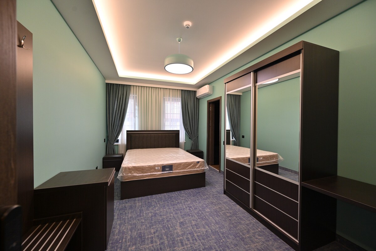 Beautiful one-bedroom apartment in a quiet and peaceful area, 1.8 km from Republic Square. Separate entrance, bathroom, kitchen, parking under security cameras and all amenities for a good rest. If desired, the hosts are ready to provide additional services (organization of tours, airport transfer for an additional prepayment).