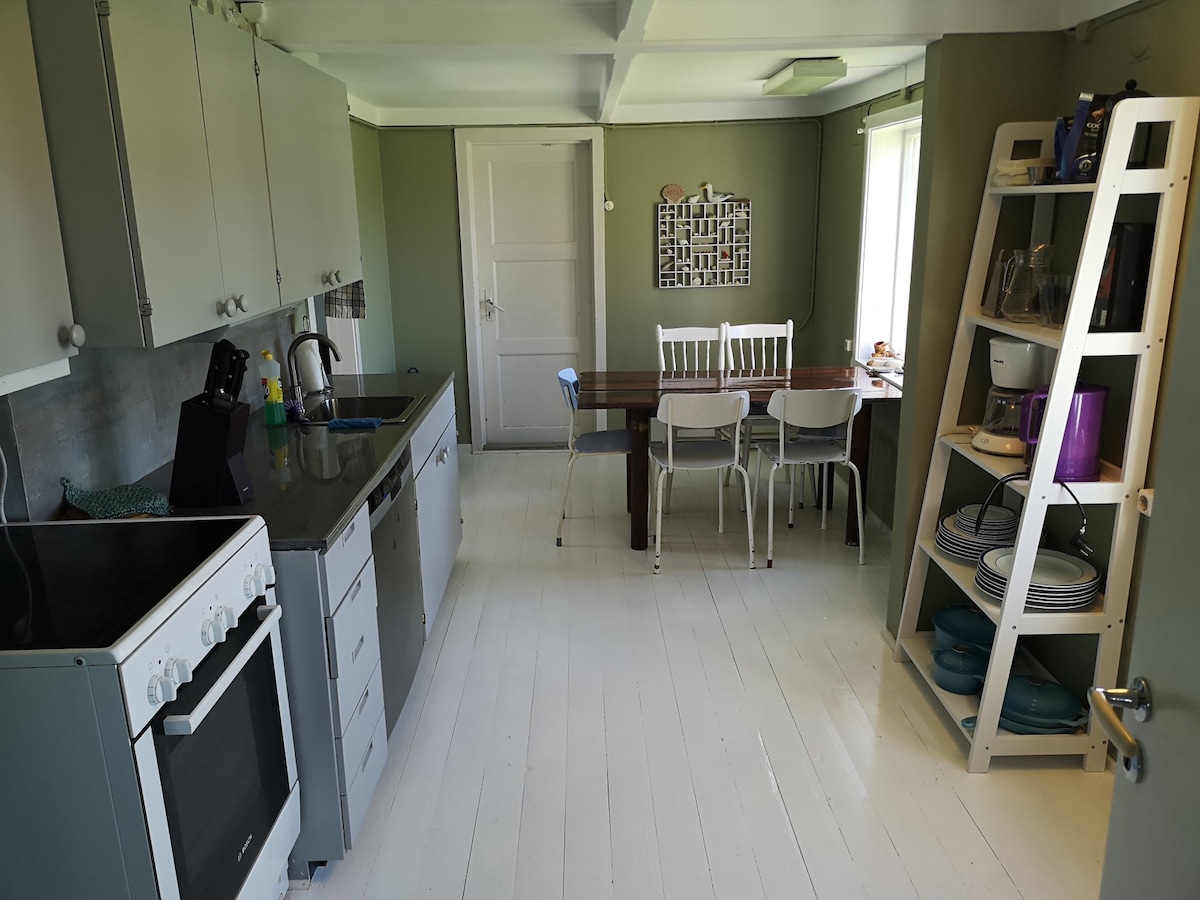 The house is a 100 years old timber house with good ceiling height. Good space, both and outdoor. Visiting farm as the closest neighbor. Nice base for excursions on southern Helgeland. The house is completely renovated on the outside and can be used throughout the year.
