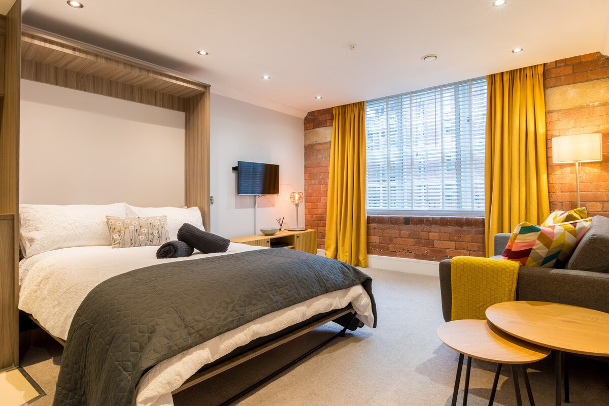 Enjoy our stylish 1-bed ground floor New York 'loft' style space. Directly on the river and one of only a handful of apartments like this in the city. Watch the water flow by your window seat, so close you’ll want to reach out and dabble! York’s most historic industrial building (1864), so peaceful yet 5 mins from city centre. Elegant mix of cool & comfort, original 19th-century brickwork. High spec includes QLED TV, king-size bed & modern quartz worktop kitchen. Privately owned/operated.