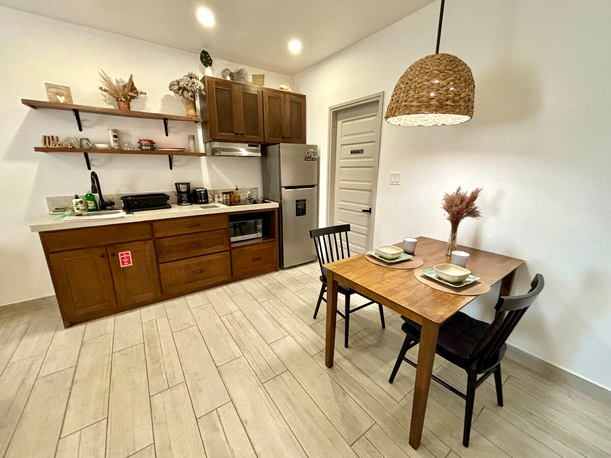 Kick back and relax in our stylish residence featuring two side-by-side studios within the same building, connected by a shared courtyard perfect for hanging out. Each studio includes a comfy queen bed positioned directly in front of a smart TV, private bathroom, and fully-equipped kitchenette. The space is air-conditioned and provides fast Wi-Fi. We are located in a tranquil, safe residential area just a 15-minute drive from the BZE Airport and 10 minutes from the water taxi and downtown.
