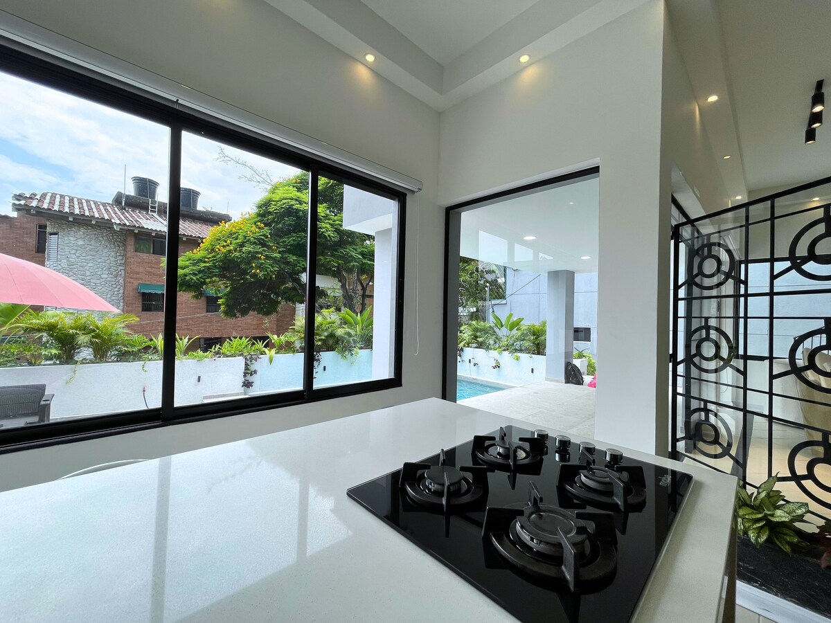 ¡Bienvenido a nuestra casa de Lujo! Esta casa nueva cuenta con un oasis en la terraza con Piscina, Jacuzzi, Turco y BBQ, perfecto para relajarse y divertirse. Ubicado en un exclusivo y tranquilo barrio Santa Mónica Residencial, 5 minutos de Granada y CC Chipichape, a 25 minutos del aeropuerto. Restaurantes, Ofrecemos todas las comodidades, colchones de alta calidad. Ideal para grupos familiares o de amigos, con espacio para 12 personas y parqueadero. esperamos tu llegada.