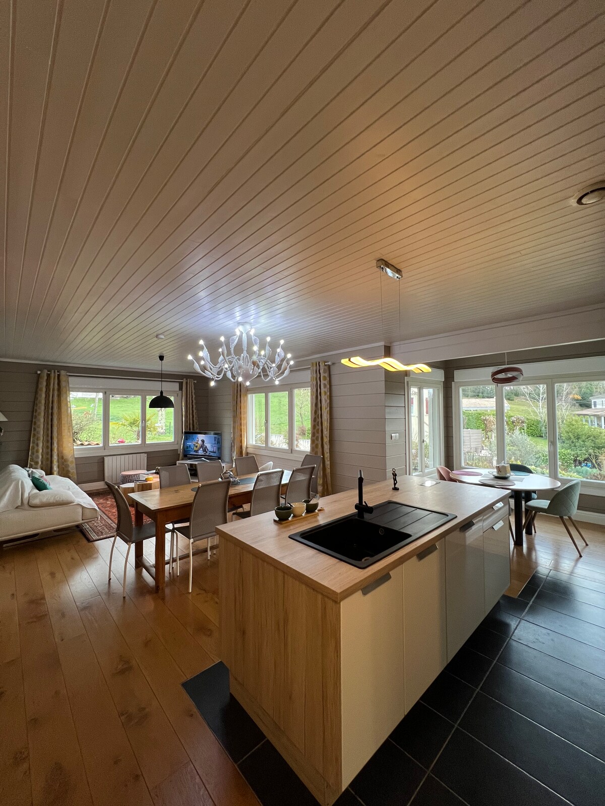 New traditional wooden house suitable for family stays but also for couples, conferring by its location, a central point for visiting Bordeaux within 20 minutes as well as the vineyards such as St Emilion, Sauternes, Blaye Côte de Bourg, etc. Located 5 minutes from a big shopping mall while retaining its bucolic aspect. Ideal for weddings at Château Lafitte, 700 m from the house, which can give the opportunity for a walk through the vineyards to return.