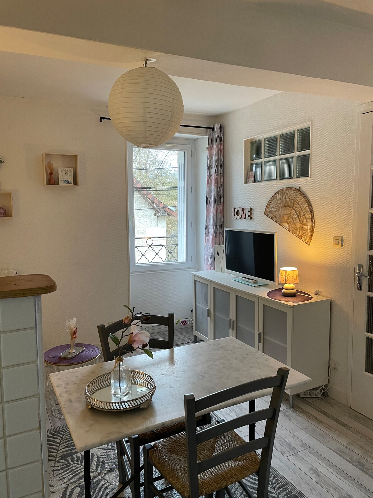 32 m2 furnished apartment, 2-star tourist accommodation. In the heart of the old town of La Roche Posay, 100 m from the center and all shops. The apartment is located on the 1st floor of a fully restored old house. It has Wi-Fi access and consists of: - An equipped kitchen (ceramic stovetop, coffee maker, kettle, microwave, mini oven and washing machine) - A sitting area (DVD player) - A bathroom with toilet AND a double bedroom Outside, a common courtyard.