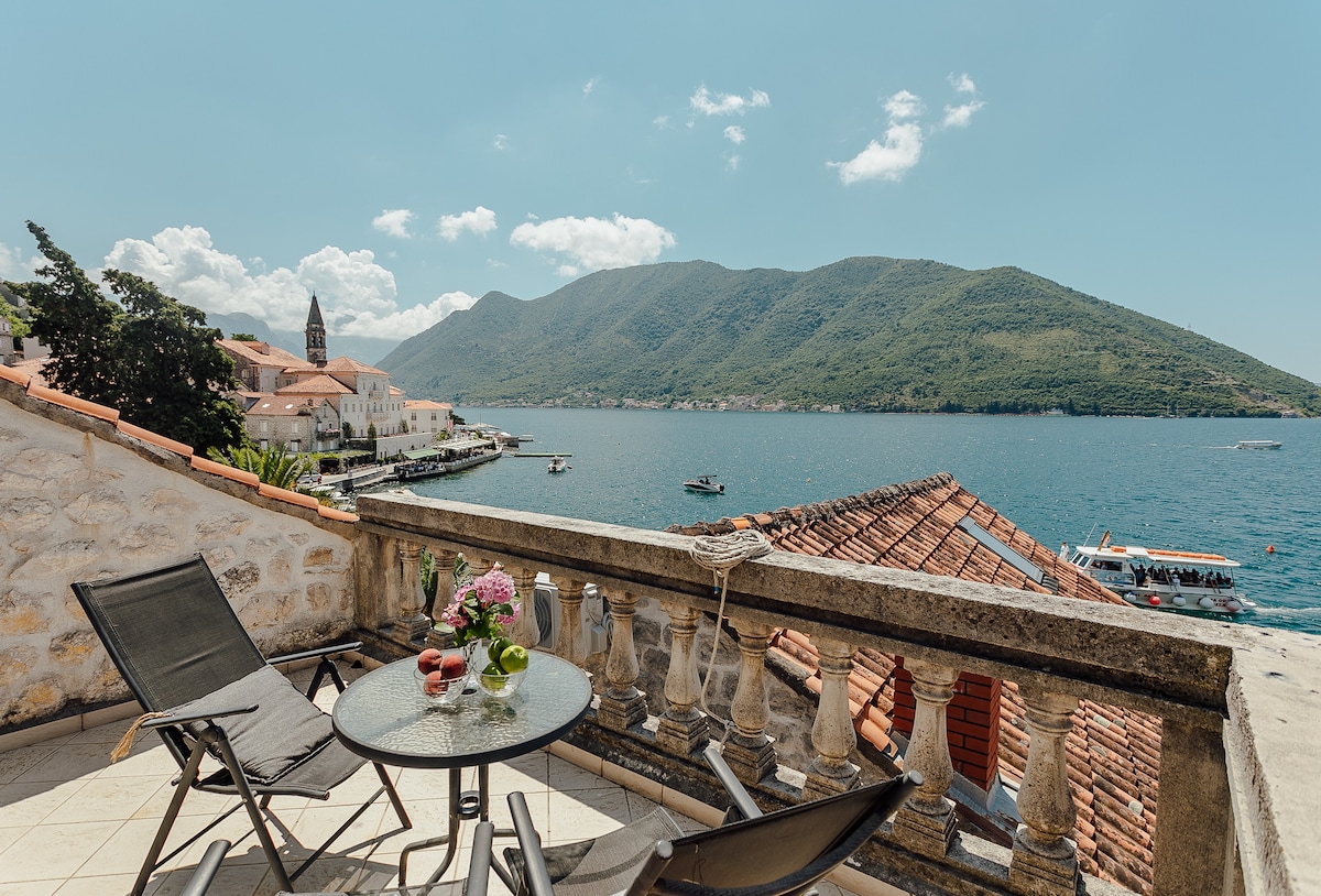 The house which is literally ten steps away from the sea. Inside the spiral staircase leads to the top floor living area, which lead to an open terrace with a view looking directly to the Island ‘lady of the rock’ Public transport: bus service between Kotor and Risan The nearest airport is Tivat in Montenegro (about half hour drive from Perast) There are many restaurants along the Riviera.
