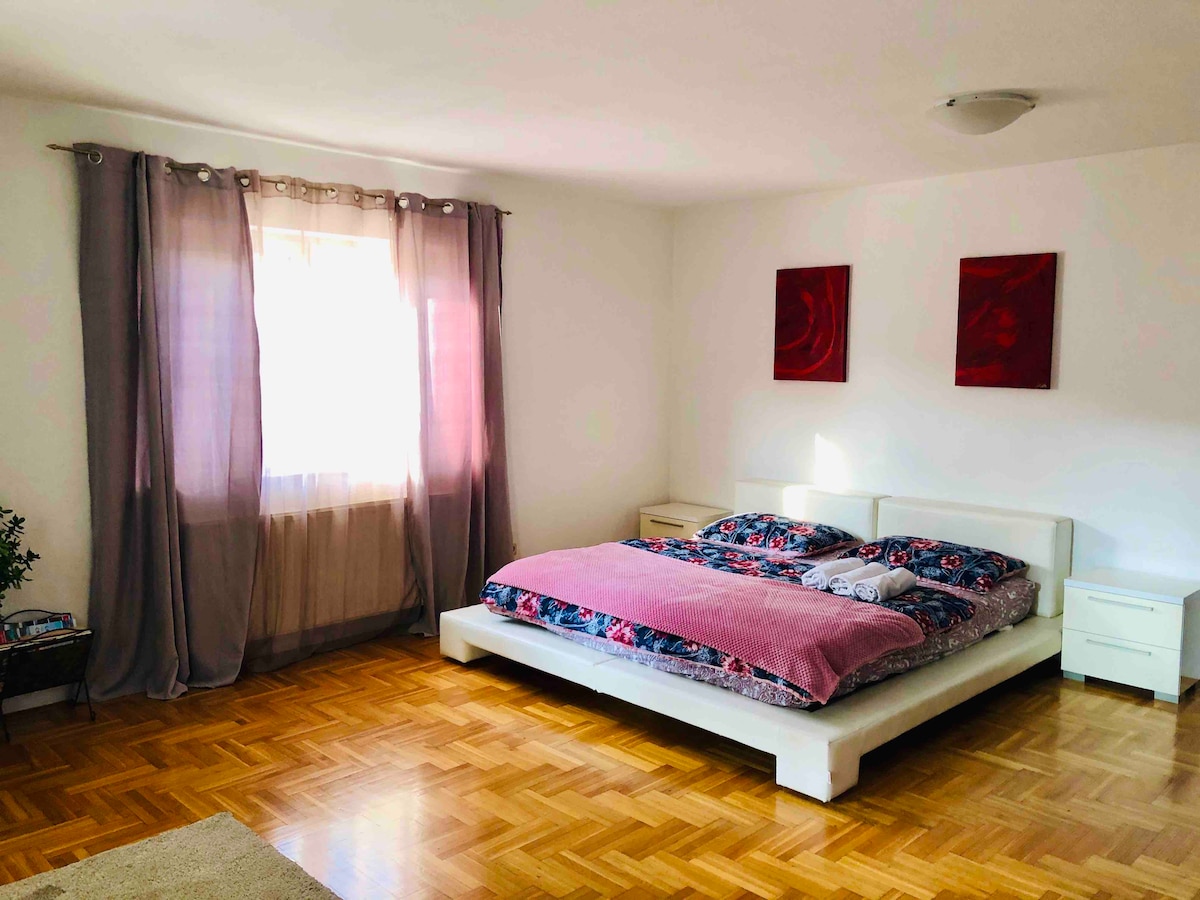 New and modern spacious light apartment on 2 th floor in the near of Zagreb. The apartment consists sharing entrance hallway, living room whit balcony, kitchen with dinning area, sleeping place, and bathroom with terace. Apartment is air conditioned, with central heating, furnished with modern light shades, all kitchen appliances, Smart TV, washer in the bathroom and wireless internet. Distance from Zagreb is about 20 minutes with car to edge of city or 15 minutes whit train to city center.