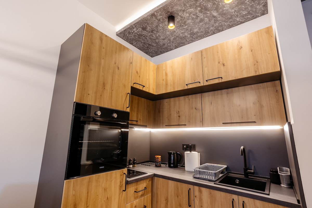 The apartment is just a few minutes' walk from the city's popular attractions. You won't need a car, as a short walk away you can find many restaurants, confectioneries, bars, cafes, grocery stores and famous attractions. During the renovation, we used only the highest quality materials, equipment and furniture to ensure a stylish, luxurious stay and maximum comfort.
