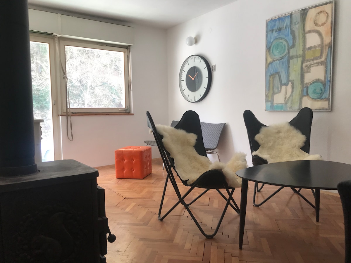 Bright apartment- loft with a great view of the mountains, just a few minutes from lake Bohinj. Black and white with something red - like a cake with a cherry on top :) You'll feel at home and at the same time you’ll be on holidays. Location offers many hiking and bicycle paths and it is close to the ski resorts of Vogel and Soriska planina and a Water park with wellness and only a few kilometres from lake Bohinj, where you can swim, surf, kayak, sup,..., and enjoy the nature.