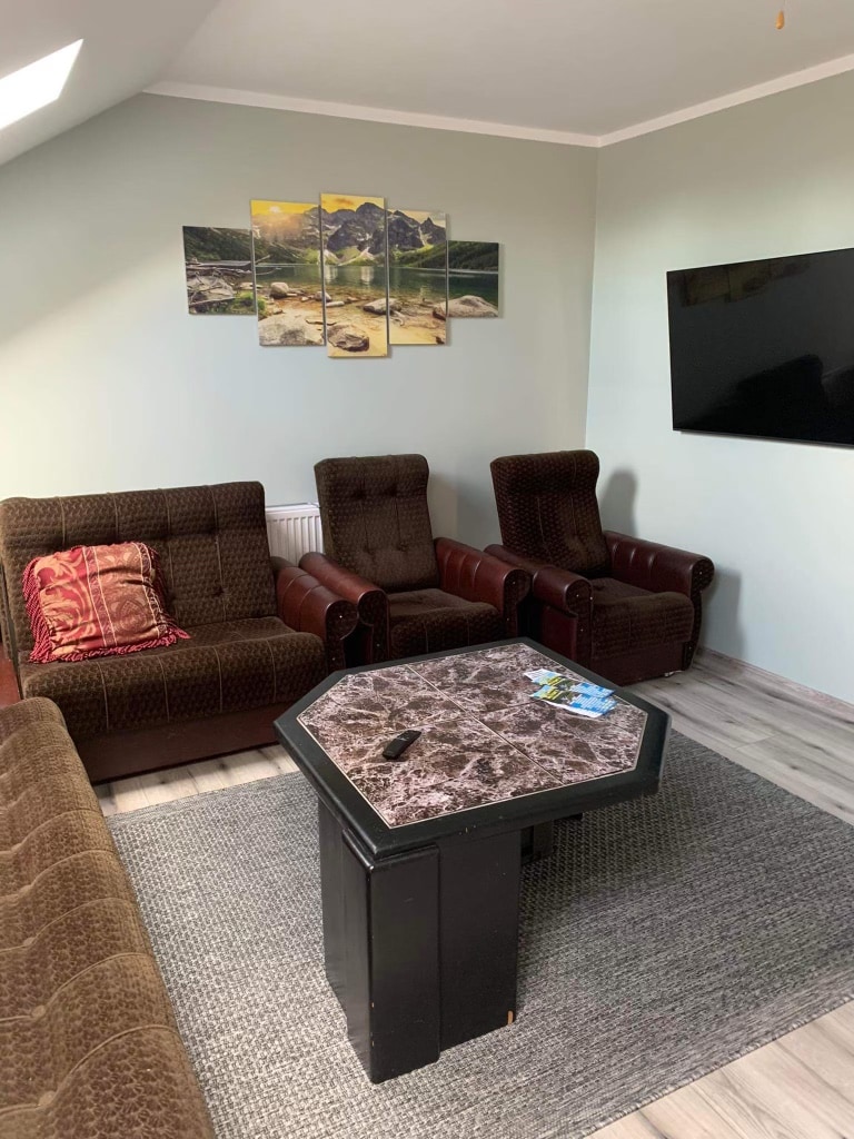 Luxurious house in the mountains "DeLuxe" built in 2017, located in a quiet and peaceful district of Nowy Targ. The house is built in a traditional highlander style, modernly furnished and equipped, perfect for relaxation all year round. The house has a beautiful panorama including Tarty, Gorce and the surrounding villages. Away from the hustle and bustle of the city, in the forest, in peace and quiet, you can relax, look at the world from a distance and "recharge your batteries".