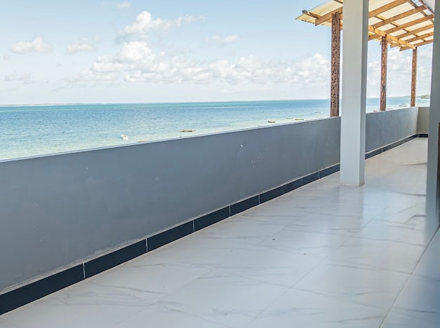 Uroa Escape is a brand-new oceanfront condo in Uroa, Zanzibar, with top-floor breathtaking views, a private balcony, a king bed, and fast WiFi. Step inside to sweeping ocean views and the calm of Zanzibar paradise. The spacious, air-conditioned bedroom has a king bed and space for a roll-out bed. Enjoy quality furnishings, a comfortable living area, and a large balcony for dining and relaxing with ocean views. Just minutes from the beach, restaurants, bars, and local attractions.