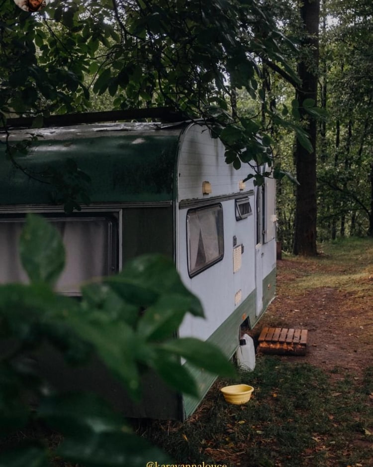 The caravan is located in a meadow in the middle of nature just a few steps from the forest. Outside we have a fireplace with a fire and a seating area. A pergola will protect you from the sun or rain. Inside the caravan there is a classic double bed and one smaller double bed. You will also find basic kitchen equipment, coffee or tea. If you get tired of looking at nature, we have board games and books. A shop or pub is within walking distance.