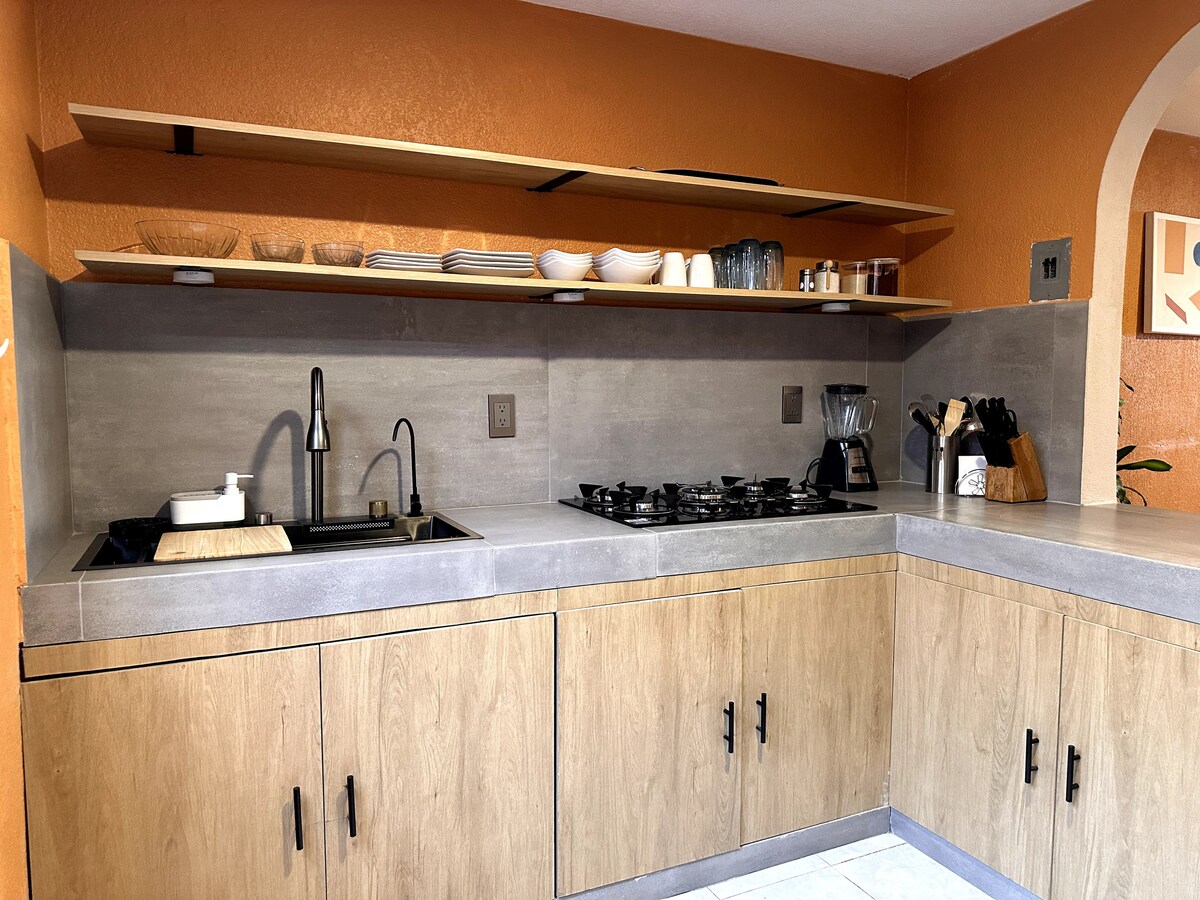 Quiet place to rest, 5 minutes from San Pedro Restaurant, 15 minutes from Pachuca and 10 minutes from Arco Norte highway. It has a kitchenette with a coffee maker, fridge, and induction grill. A place for business people who require Internet service or to enjoy with the family. It has private parking inside the accommodation, and the option to enjoy a day of roast meat, we lend you a barbecue. Nearby there is an Oxxo four blocks away.