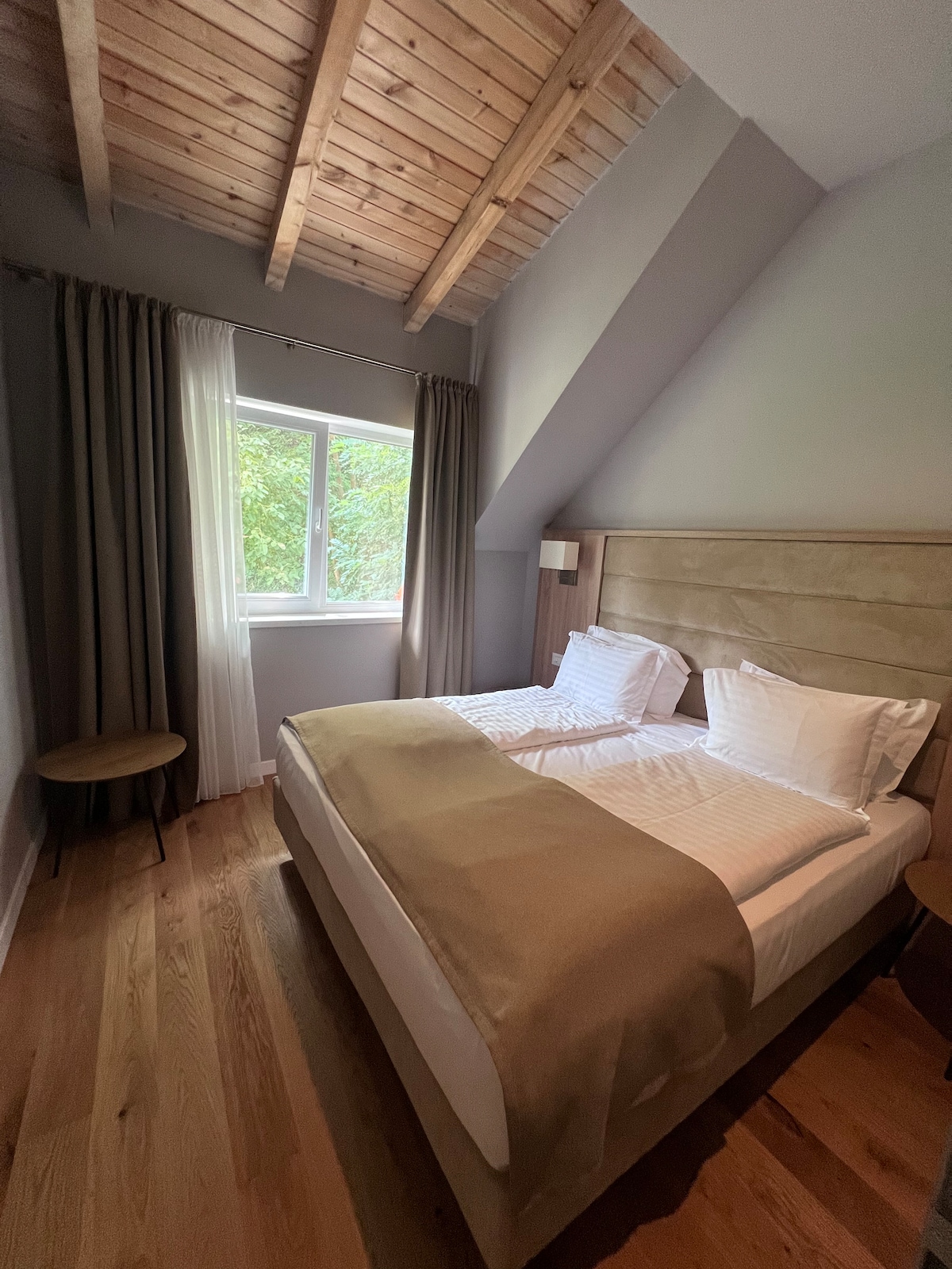 ROOM “88” – A Refined Blend of Modern Design and Comfort As part of an exclusive collection of three designer apartments, ROOM “88” seamlessly integrates contemporary aesthetics with state-of-the-art technology. Thoughtfully designed for a warm and inviting ambiance, it features plush carpets, fully adjustable LED lighting, and central heating for year-round comfort. Situated within a lush garden at the foot of Mount Tâmpa, it offers a tranquil retreat just a 5-minute walk from the forest.