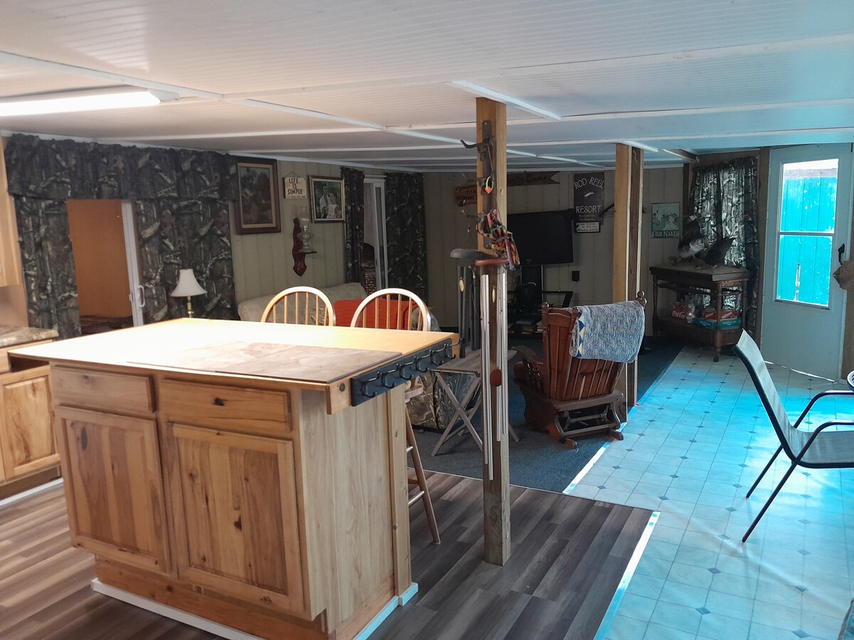 We are 5 miles from beautiful lake Sam Rayburn. You can fish all day or evening, come home to a fish cleaning station for your catch. Plenty of room to park and charge your boat to be ready for the next day. Private deck/grill and sitting if you choose to cook your meal. Clean hot shower. Living area very clean with large screen TV/movies or books if you choose to read. Queen size bedding for a great nights rest. Very quiet with only the cows, birds and squirrels