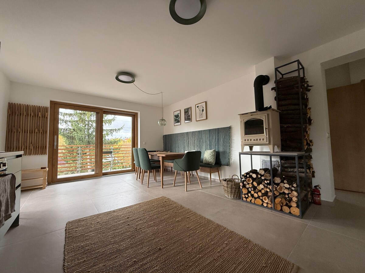 If you want to escape the daily hustle and bustle and stress, come and stay in our cottage in the heart of nature in picturesque Vyhne. Here you can enjoy a wonderful view of the surrounding hills of Štiavnica, the stone sea, romantic moments on the terrace for two, or relax in our bathtub. In summer, you can walk along forest paths, breathe fresh air and feel the smell of nature. In winter, you can warm up by the fireplace and watch your favorite movie on Netflix.