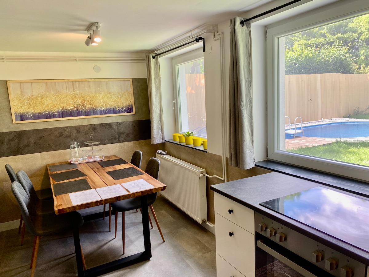 In the quiet valley of the Visegrád Mountains, near Szentendre and Budapest, the Dolina Luna apartment house awaits, with three apartments in one building, which have separate entrances, but can be opened on request. Ideal for families, friends or even corporate team building. The balconies offer beautiful views of the mountains, and the garden also has a jacuzzi*, barbecue and fireplace. The well-equipped, spacious apartments also have a cozy fireplace, wifi and TV for those who don't just want to hike. *extra fee