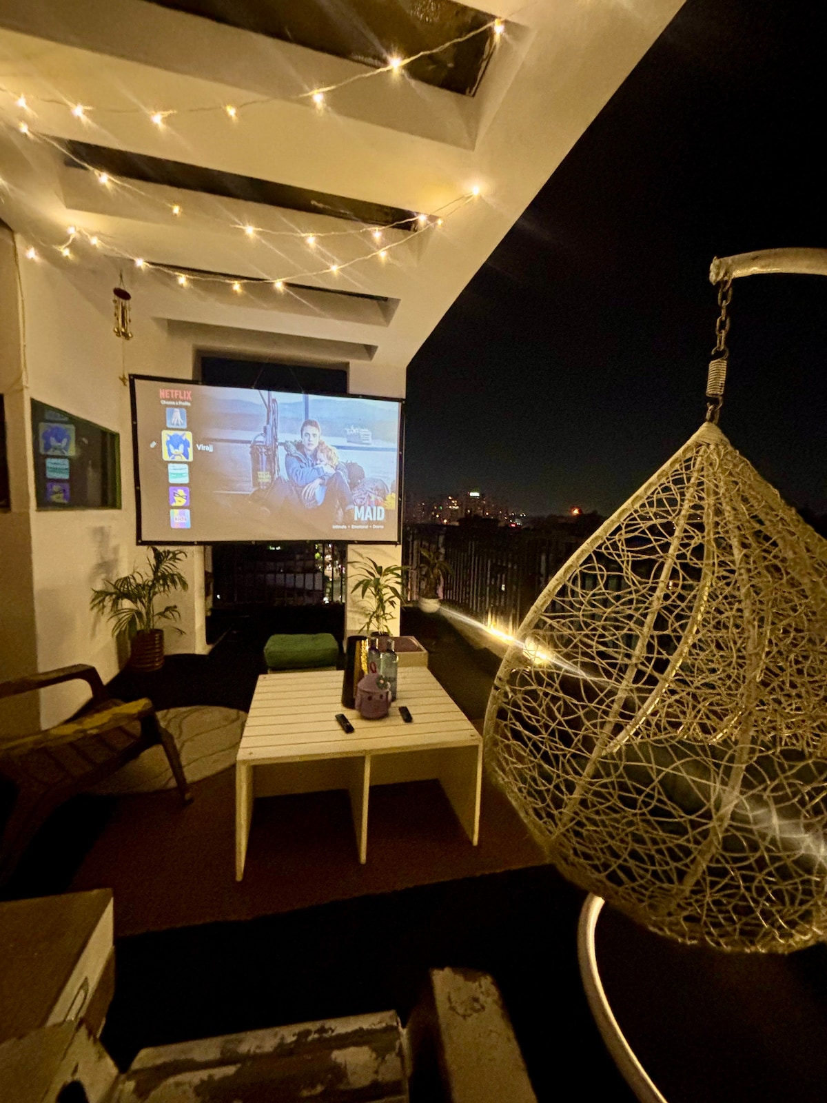 @Timeless_Stays_India Experience luxury in our 3BHK with a twist! It features 2 stylish bedrooms for a restful sleep and a dedicated 3rd room designed as a proper private cinema. Enjoy movie nights with a pro projector and lounge seating. Includes a full kitchen, breezy living area, and fast Wi-Fi. Perfect for film lovers and families. Book your stay for a front-row experience! Parties not allowed No loud music Govt. ID required of all the guests