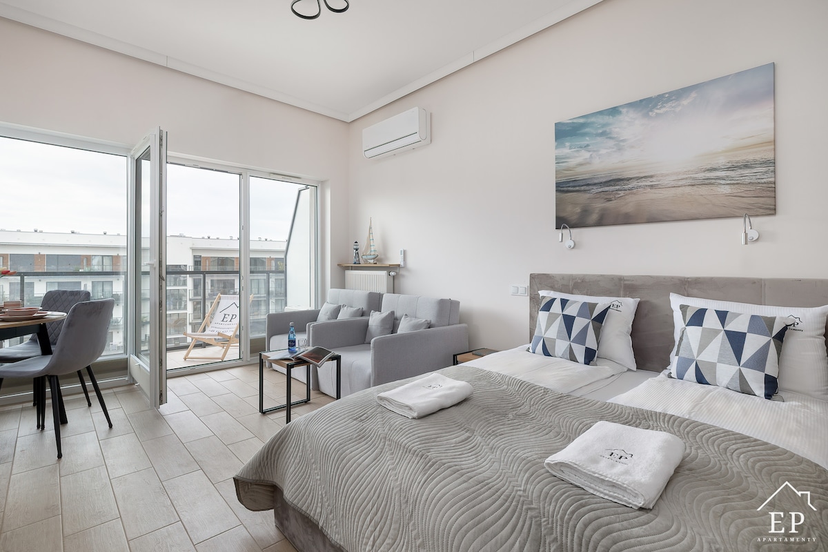 Do zaoferowania mamy dla Państwa apartament składający się z pokoju z aneksem kuchennym i balkonem, łazienki z prysznicem oraz przedpokoju. Świetna lokalizacja - do plaży 300 m, do molo 500 m. Doskonałe mieszkanie dla rodziny. Na przeciwko budynku mieszkalnego mieści się również wejście do przepięknego Wolińskiego Parku Narodowego. Bardzo spokojna okolica. Apartament w pełni wyposażony. In the apartment, there's one room connected to the kitchen and the bathroom.