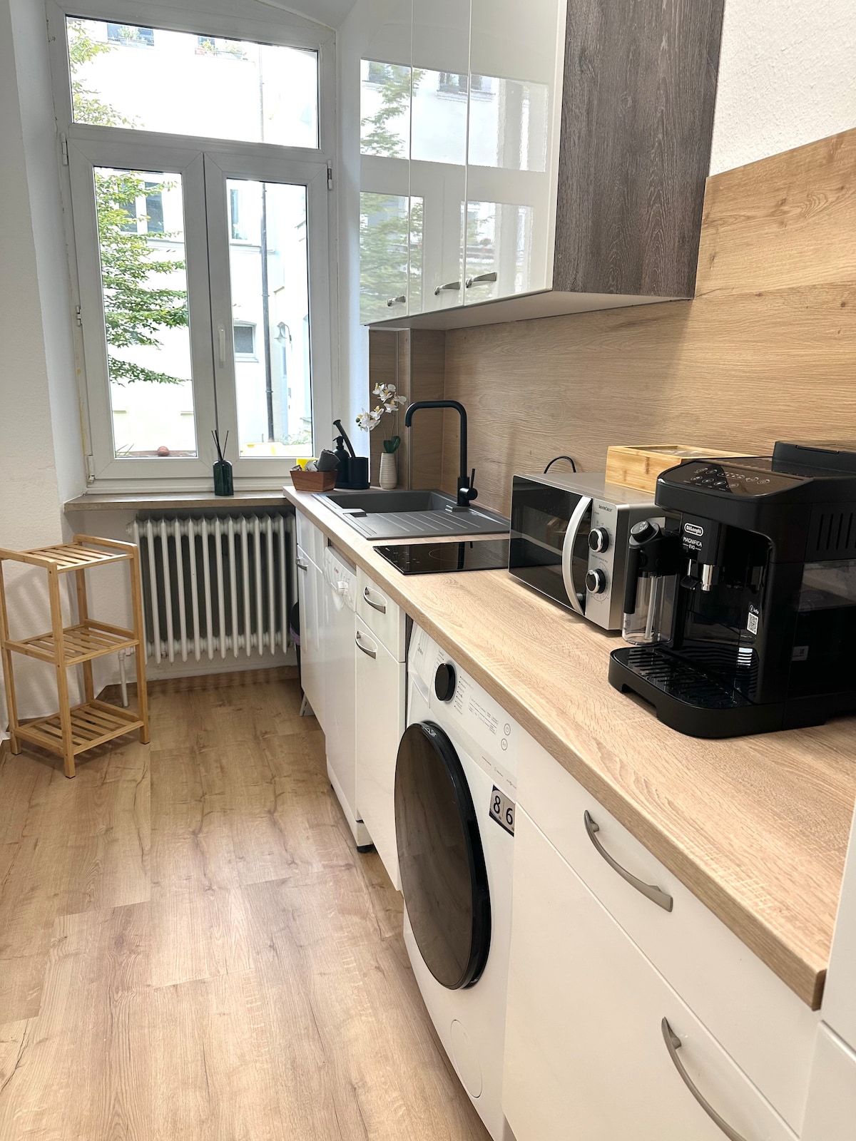 The very bright and newly furnished apartment is located in the heart of Nuremberg. There are restaurants, pubs and stores for everyday needs in the area. The important hotspots such as the pedestrian zone, National Museum or Lorenzkirche are also within walking distance. The subway stop is a 4-minute walk and Nuremberg Central Station is a 13-minute walk. Nuremberg Airport is 17 minutes by subway and the exhibition center is 12 minutes away.