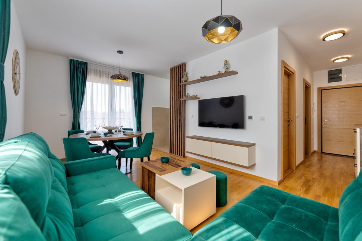 Luxuriously furnished apartment in Zlatibor, located in the heart of the tourist complex, with a modern design and a secured garage space. The apartment is ideally located with a view of Tornik, just a few minutes walk from the center of Zlatibor and the Gold Gondola. The apartment is equipped with the latest equipment - Smart TV, washing machine and dryer, dishwasher, air conditioning, coffee maker. The complex includes a gym, Wellness & Spa in the neighboring building (for an additional fee).
