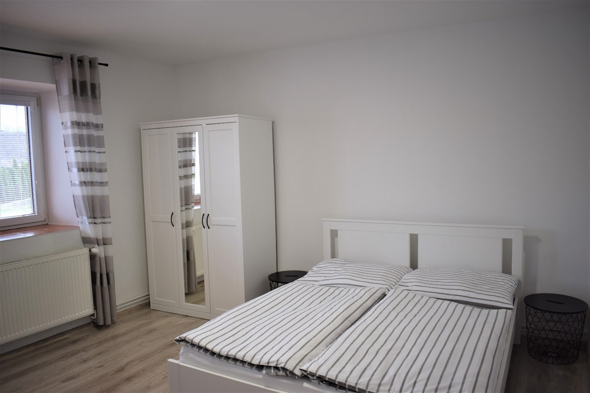 Escape the city and enjoy a relaxing stay on our farm. You can expect cozy and comfortably furnished rooms, a spacious courtyard with a fireplace, a dog and two cats to cuddle, and a large garden with fruit trees, vegetable beds and other seating. You can order a box of vegetables, fresh eggs or a pizza from our pizza oven. The accommodation has a fast WiFi connection, so it is possible to work remotely on the farm.