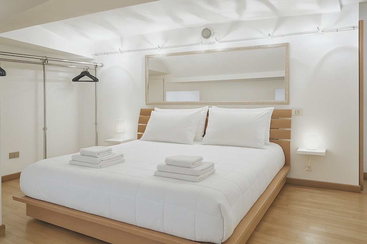 Nuovo ed elegante monolocale in zona giovane e vivace. Ambiente confortevole e riservato, letto alla francese con materasso e topper di qualitá, Wi-Fi, Wireless Charger Smartphone Station. Comodo bagno interno con doccia, phon e biancheria da bagno. Due grandi portefinestra garantiscono una diretta e calda illuminazione della casa. Angolo cottura attrezzato con microonde, frigorifero, macchina caffè americano, Nespresso, bollitore.
