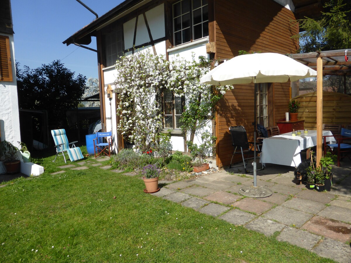 You will stay in a small, private, charmingly developed Wöschhüsli in the village of Knonau. The house is ideal for 2-3 people (49 m²). It is nestled in a stylish estate with barns and houses of a former farm. On foot you can reach the train station in 7 minutes, where you are in Zug in 10 minutes by train and in 35 minutes in Zurich and Lucerne. You won’t forget your time in this romantic, memorable place. Give it a try!